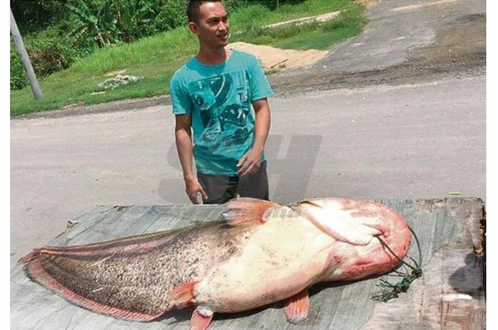 Grid.ID - Ruslan Mohamad Napiah (45), warga Kampung Jerantut Feri, Pahang, Malaysia, ini menangkap ikan lele raksasa.