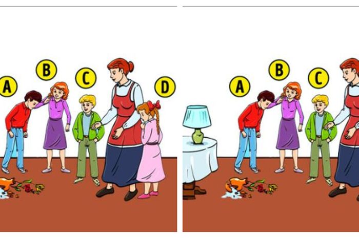 Dalam tes kepribadian gambar yang akan mengungkap karakter dirimu yang sesungguhnya ini, ada empat anak yang memiliki kemungkinan memecahkan vas bunga.