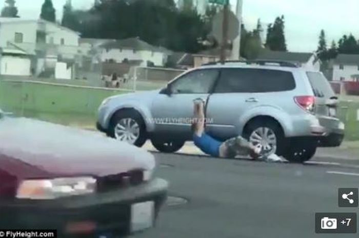 Pria pembajak mobil tersebut berpegangan pada pintu samping pengemudi dan terseret sejauh ratusan kaki.