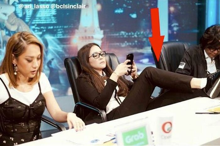 Di foto itu, Maia Estianty tampak duduk santai sambil bermain ponsel di kursi juri.
