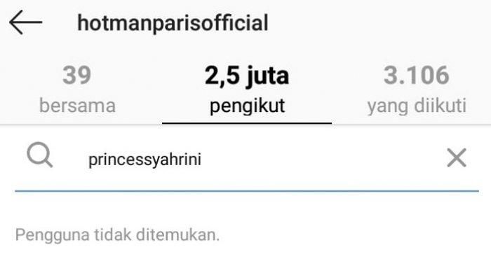 Nama Syahrini tidak ada dalam daftar pengikut Hotman Paris di Instagram.