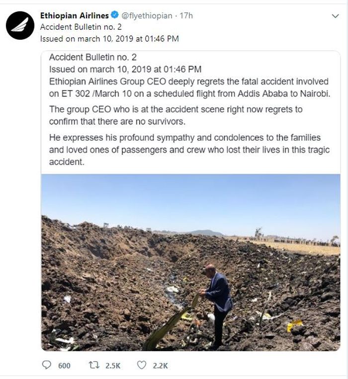 "CEO Grup sekarang berada di lokasi kecelakaan menyesal untuk mengonfirmasi tidak ada korban selamat," demikian pernyataan maskapai yang diunggah via Twitter