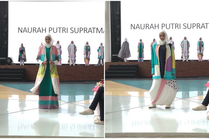 Naurah membuat para pencinta mode yang hadir pada hari itu menatap takjub dengan delapan koleksi busana muslim yang dirancangnya.