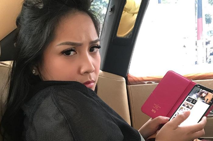 Tampak Nagita Slavina sangat manis kala mengenakan busana simpel blouse berwarna olive dengan aksen wrap dan detail ikat pada pinggangnya.