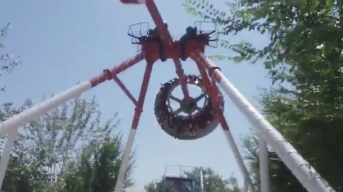 Sebuah video merekam detik-detik mengerikan kecelakaan di sebuah taman taman hiburan di Jizzakh, Uzbekistan.