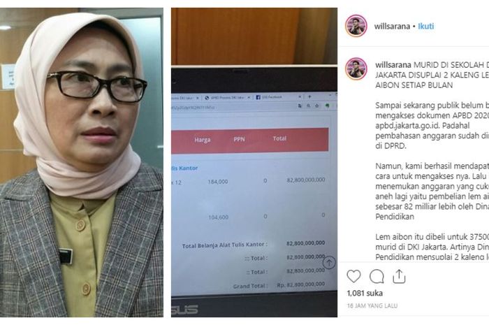 "Kami berhasil mendapatkan cara untuk mengaksesnya. Lalu kami menemukan anggaran yang cukup aneh lagi, yaitu pembelian lem aibon sebesar 82 milliar lebih oleh Dinas Pendidikan⁣," tulisnya.