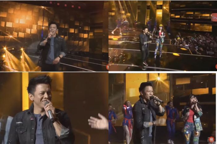 Ariel terlihat bernyanyi cukup lirih sembari berusaha mengimbangi Via Vallen.