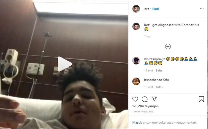 Dalam unggahan itu nampak Larz sedang terbaring di ranjang rumah sakit.