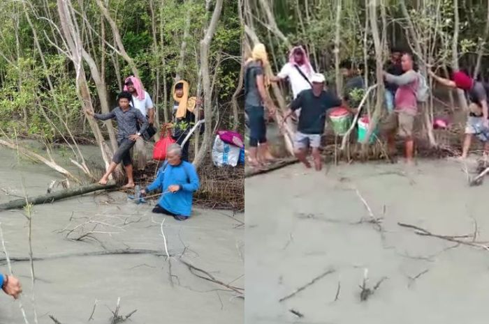 Grid.ID - Beredar sebuat video yang menunjukkan belasan orang berada di tengah hutan bakau di tepi pantai.