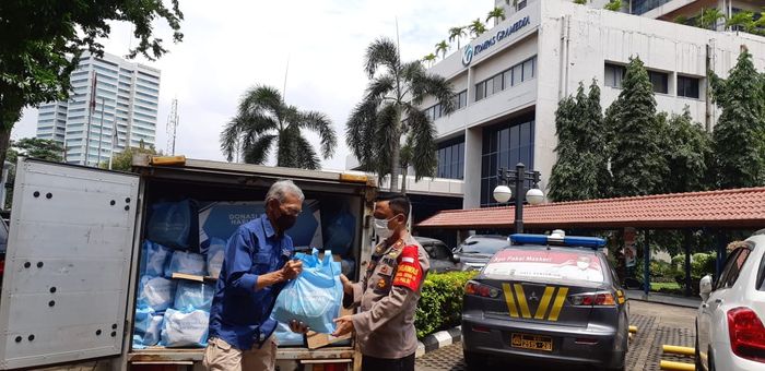 Grid.ID - Yayasan Dana Kemanusiaan Kompas (DKK) bersama Kepolisian Sektor Tanah Abang menyalurkan bantuan dari pembaca Kompas kepada warga terdampak pandemi Covid-19 di Kecamatan Tanah Abang, Jakarta Pusat.