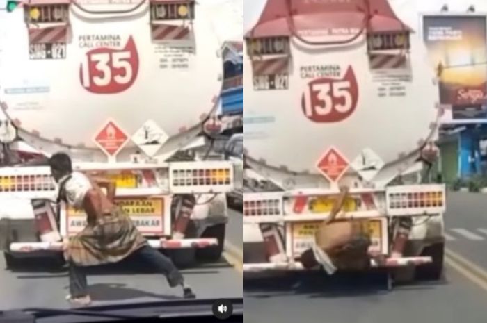 Dalam tayangan video tersebut, tampak sebuah truk Pertamina yang sedang berhenti di lampu merah.
