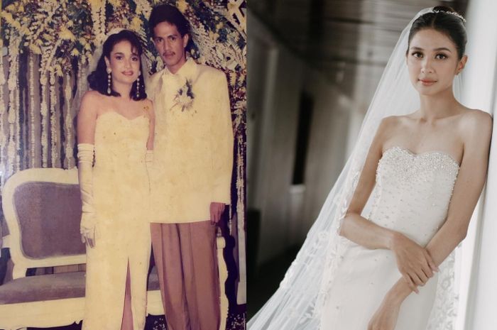 Di balik momen bahagia itu, ternyata Mikha Tambayong mengenakan baju pengantin sang ibu di hari pernikahannya.