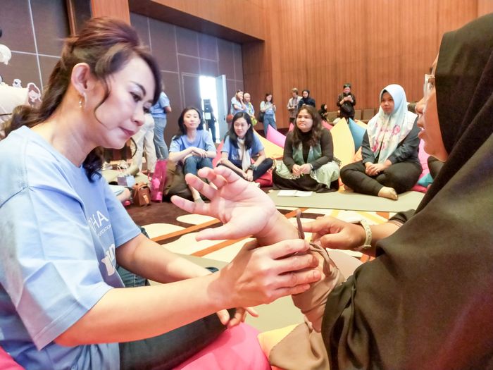 Ajakan bagi pejuang psoriasis untuk melakukan berbagai kegiatan bersama, mulai dari diskusi langsung dengan dokter kulit, berjejaring dengan sesama pejuang psoriasis, hingga melakukan latihan yoga.