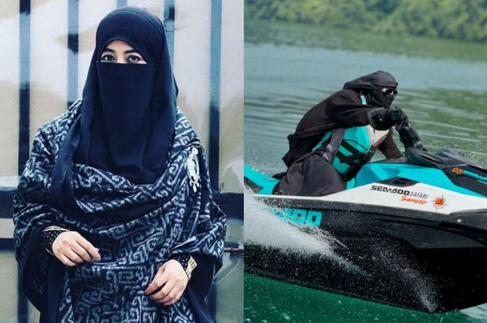 Grid.ID - Pendakwah Umi Pipik nekat nyetir jetski sendiri di Danau Toba.