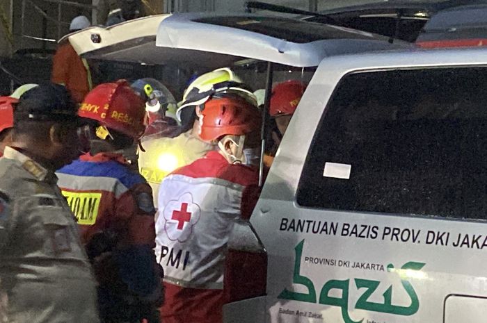 Sekitar pukul 18.08 WIB, relawan yang terdiri dari tim pemadam kebakaran, PMI dan Basarnas turun dari gedung Glodok Plaza.
