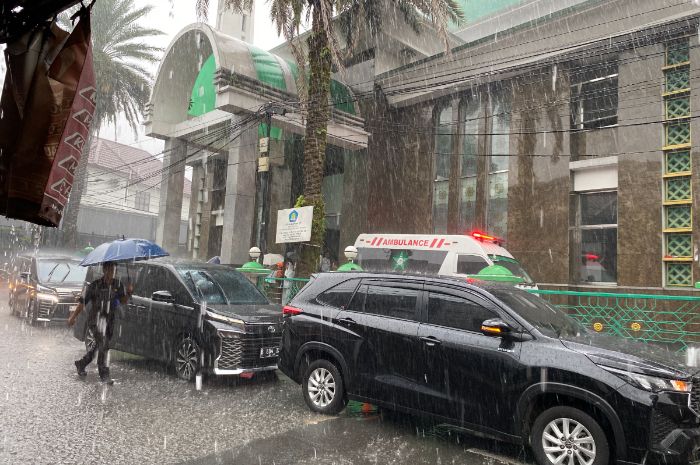 Grid.ID - Hujan deras mengguyur wilayah Cilandak dan sekitarnya, lokasi rumah duka di mana jenazah suami Najwa Shihab disemayamkan.