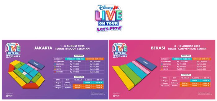 Konser ini menghadirkan bintang-bintang Disney Junior favorit anak-anak, termasuk Mickey Mouse, Minnie Mouse, Ariel, Puppy Dog Pals, Super Kitties, dan Team Spidey dari Marvel’s Spidey and His Amazing Friends. Lewat lagu-lagu interaktif, tarian seru, efek visual 3D memukau, hingga aksi panggung akrobatik, pertunjukan ini menjanjikan hiburan penuh keajaiban yang tak akan terlupakan.