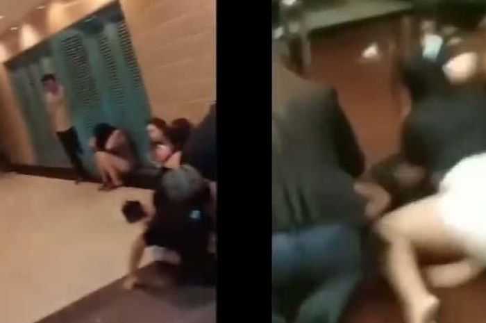 Tampak seorang perempuan berteriak dan mengamuk dengan keras, hingga harus ditahan oleh empat orang pria. Wanita itu terlihat memberontak saat hendak dibawa pergi menggunakan sepeda motor.