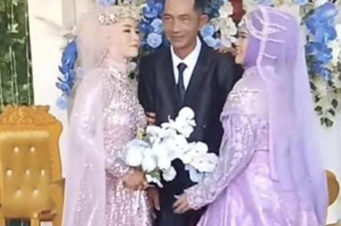 Yang kemudian duduk di pelaminan bersama 2 wanita sekaligus. Alhasil, muncul narasi bahwa ketua RT itu disebut nikahi 2 wanita sekaligus.