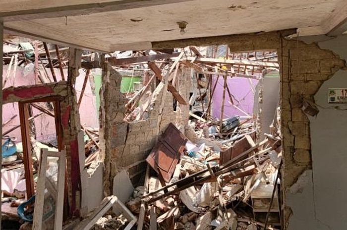 Ia pun panik dan buru-buru mengecek kondisi keluarganya. Kepanikannya semakin menjadi tatkala melihat genting rumah tetangganya tiba-tiba rubuh.