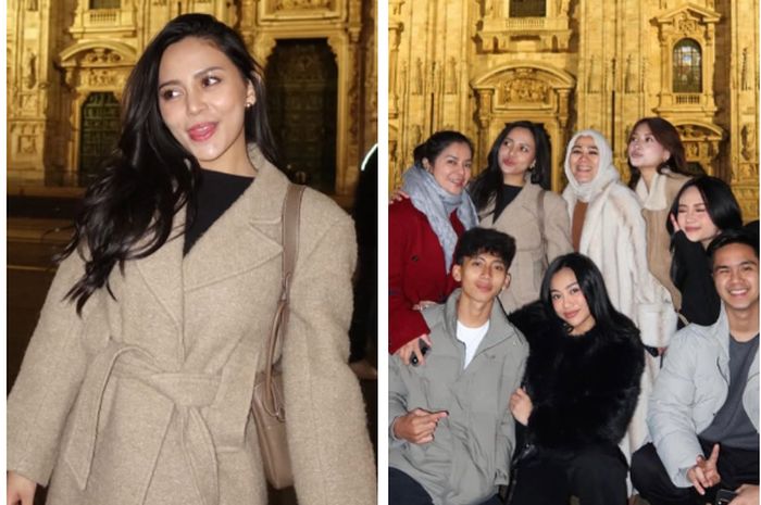 Dalam potret yang dibagikan, rombongan keluarga terlihat kompak berpose dengan latar bangunan ikonik khas Italia. Suasana hangat dan penuh kebersamaan tampak jelas dari ekspresi mereka.