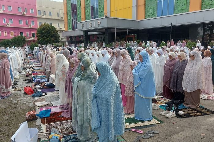 Grid.ID – Suasana penuh kemenangan menyelimuti Plaza Universitas Muhammadiyah Jakarta (UMJ), Ciputat Timur, Tangerang Selatan pada Jumat (20/3/2026). Ratusan jamaah memadati area kampus untuk melaksanakan ibadah Salat Idul Fitri 1447 H dengan penuh khidmat.