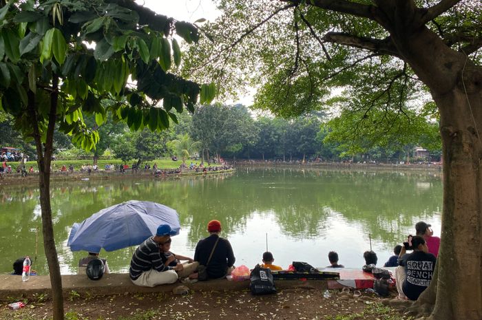 Grid.ID - Puluhan warga memadati tepi danau di kawasan TPU Tanah Kusir, Jakarta Selatan, setelah Harry Kiss bersama Besbarini menebar ribuan ikan di lokasi tersebut. Danau yang berada di area makam Vidi Aldiano itu mendadak ramai oleh masyarakat yang datang membawa alat pancing.