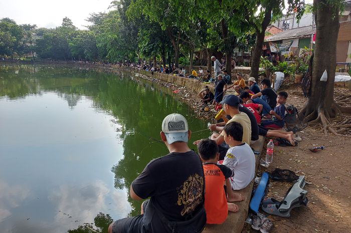 Grid.ID – Suasana di area Tempat Pemakaman Umum (TPU) Tanah Kusir, Jakarta Selatan, lebih ramai dari biasanya pada Sabtu (18/4/2026). Area danau yang terletak di dekat makam penyanyi Vidi Aldiano ramai diserbu warga sekitar yang membawa alat pancing.