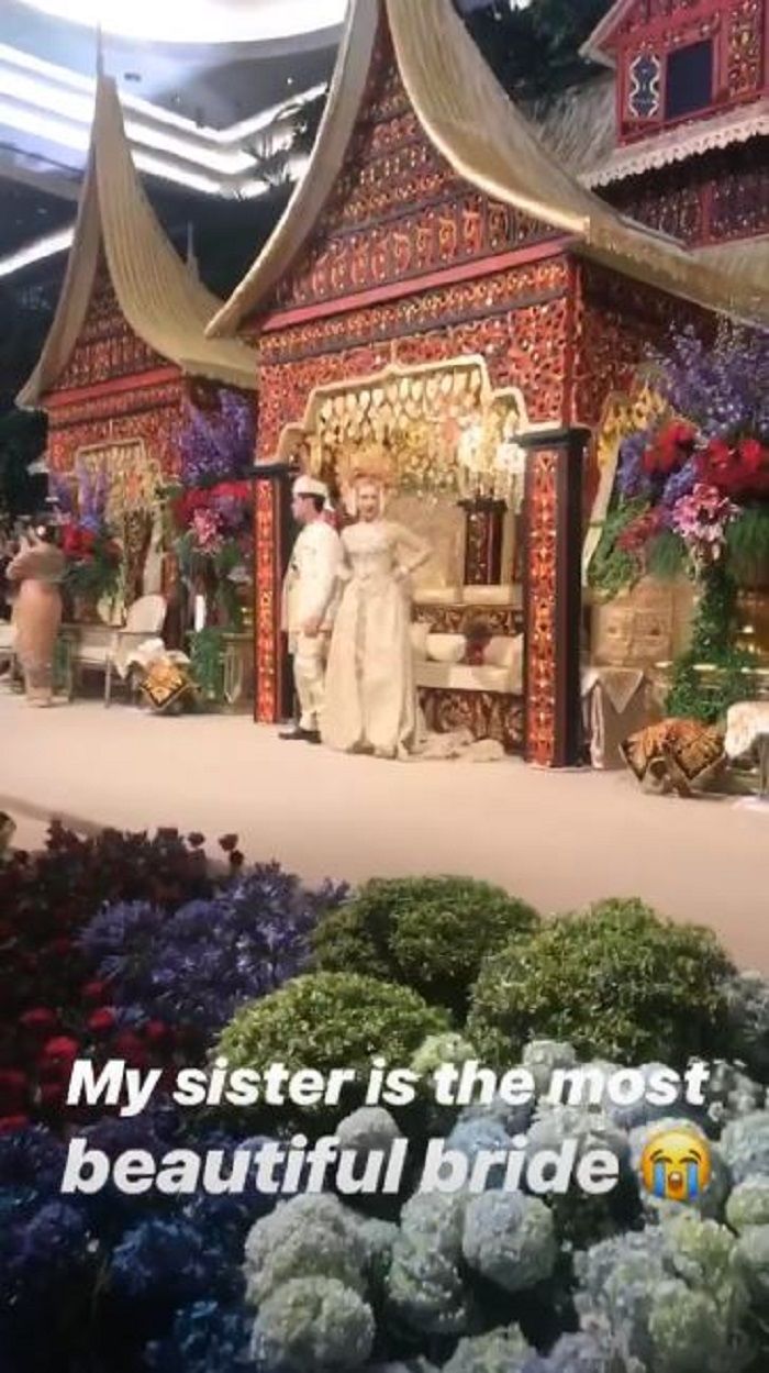 Melalui instagram story tersebut juga terlihat hiasan pelaminan dengan unsur Minang yang kental.