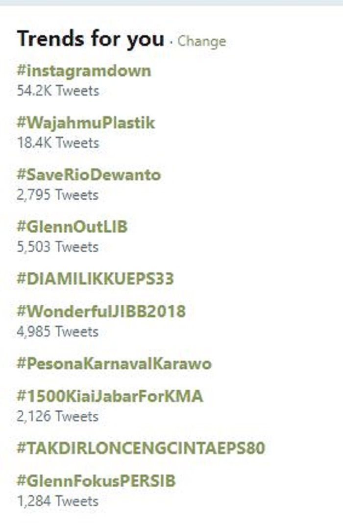 Bahkan hashtag #instagramdown menduduki peringkat nomor satu di twitter mengalahkan topik tentang Ratna Sarumpaet yang sempat heboh sejak kemarin.